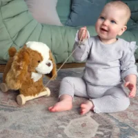 While this walking dog toy helps encourage imaginative playtime, the interactions with Peanut Pup also foster emotional development as a strong bond and affectionate connection is made. This makes him the perfect companion for your little one and an ideal toy dog to walk and play with.